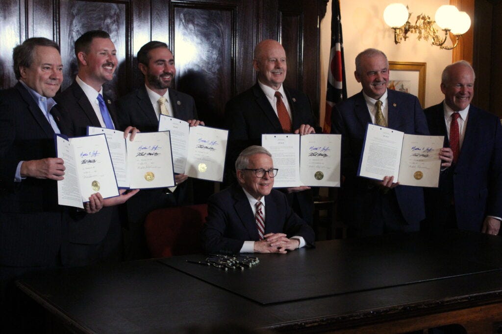 Ohio Gov. Mike DeWine signed half a dozen pieces of legislation Friday during a ceremony at the Ohio Statehouse. The slate included five property tax measures as well as a bill known as Avery’s Law meant to prevent dog attacks.