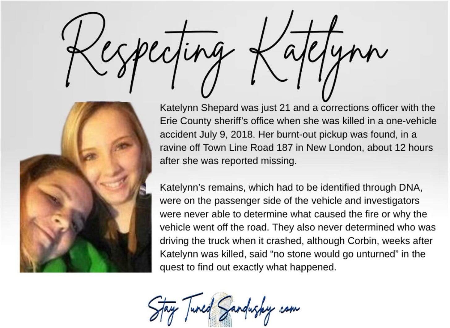 Tricia Shepard and Katelynn’s stepfather, Jeff Maletz and their younger daughter Hailey Maletz were at the sheriff’s office on Tuesday for a scheduled appointment with Sheriff Corbin, but he was a no show. A dispatcher said they could not find the sheriff, or Lt. B. Duncan.