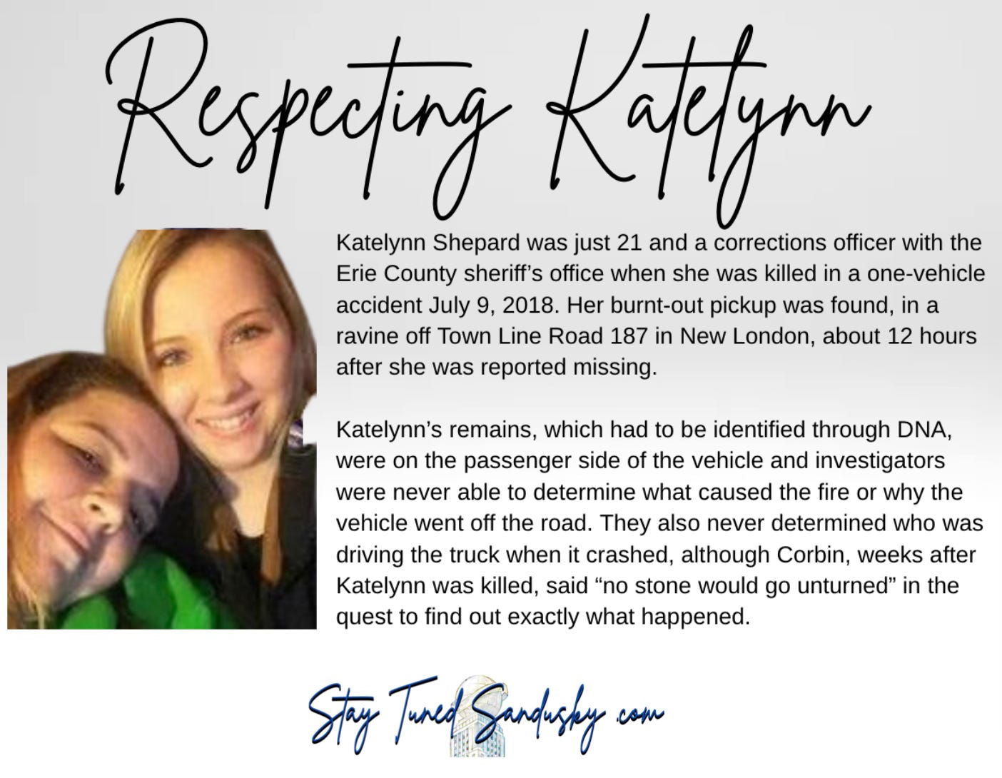 Tricia Shepard was there last Tuesday with Katelynn’s stepfather, Jeff Maletz, and their younger daughter, Hailey Maletz. They showed up for a scheduled appointment because that is what families do. A news team from TV Channel 19 in Cleveland was also there, alongside StayTunedSandusky.