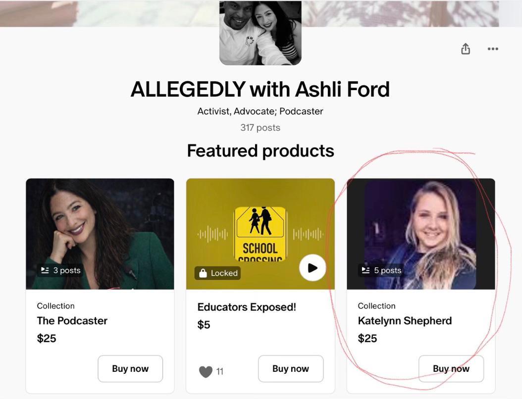 Ford, however, is selling what she calls a “collection” of evidence about Katelynn at her Patreon page for $25. Nobody knows more about her daughter, and her final hours, than Tricia, nobody’s thought about that time more than she has. Ashli claims to know, but her basic facts and timeline are wrong, according to Tricia, and she’s not taking time, or bothering to, understand anything.