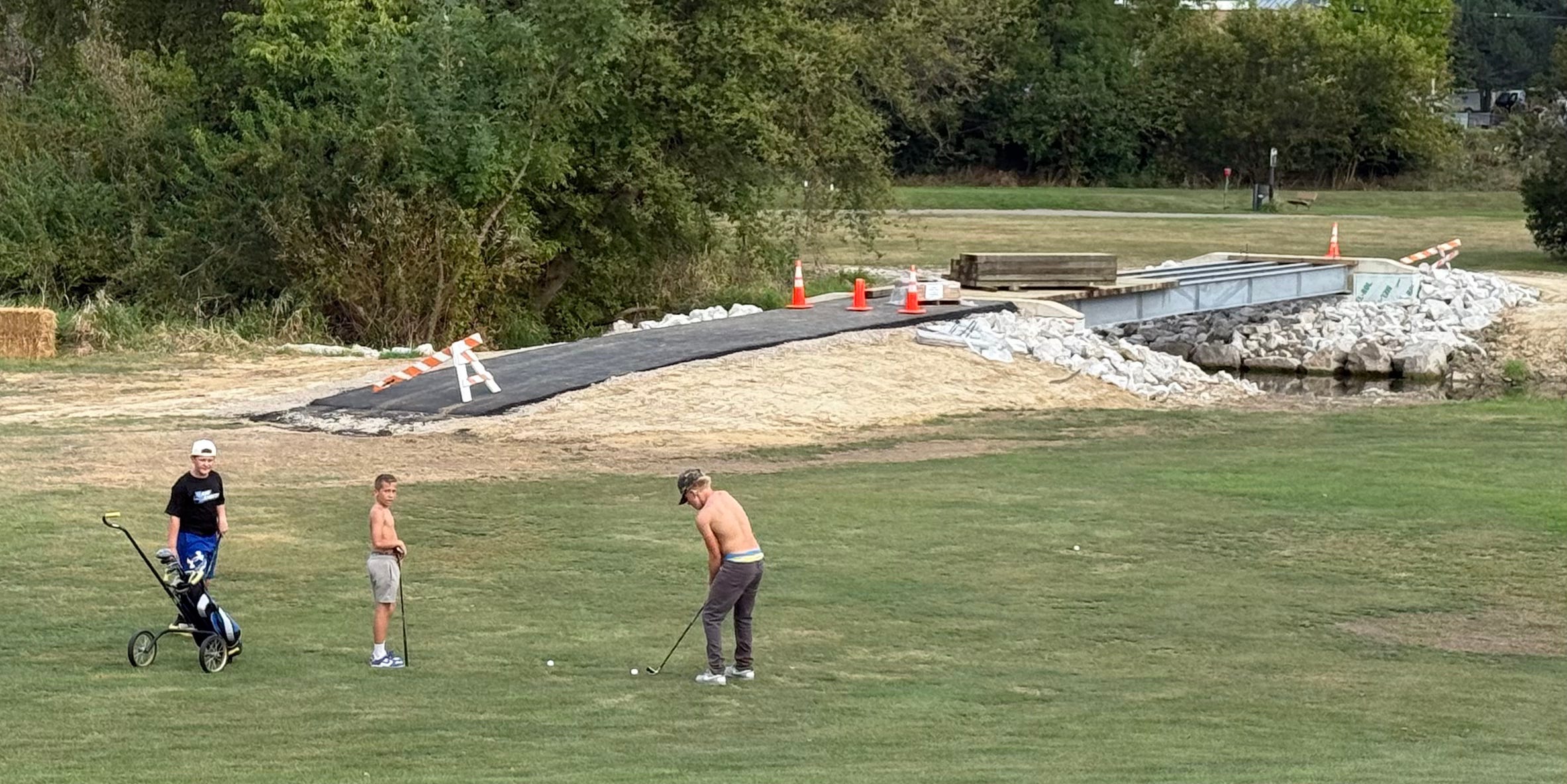 SANDUSKY — A new bridge near the 5th hole at Mills Creek Golf Course nearing completion is a higher structure designed to withstand future flood events. It’s also wider to allow access for maintenance vehicles that previously could not use the crossing.
