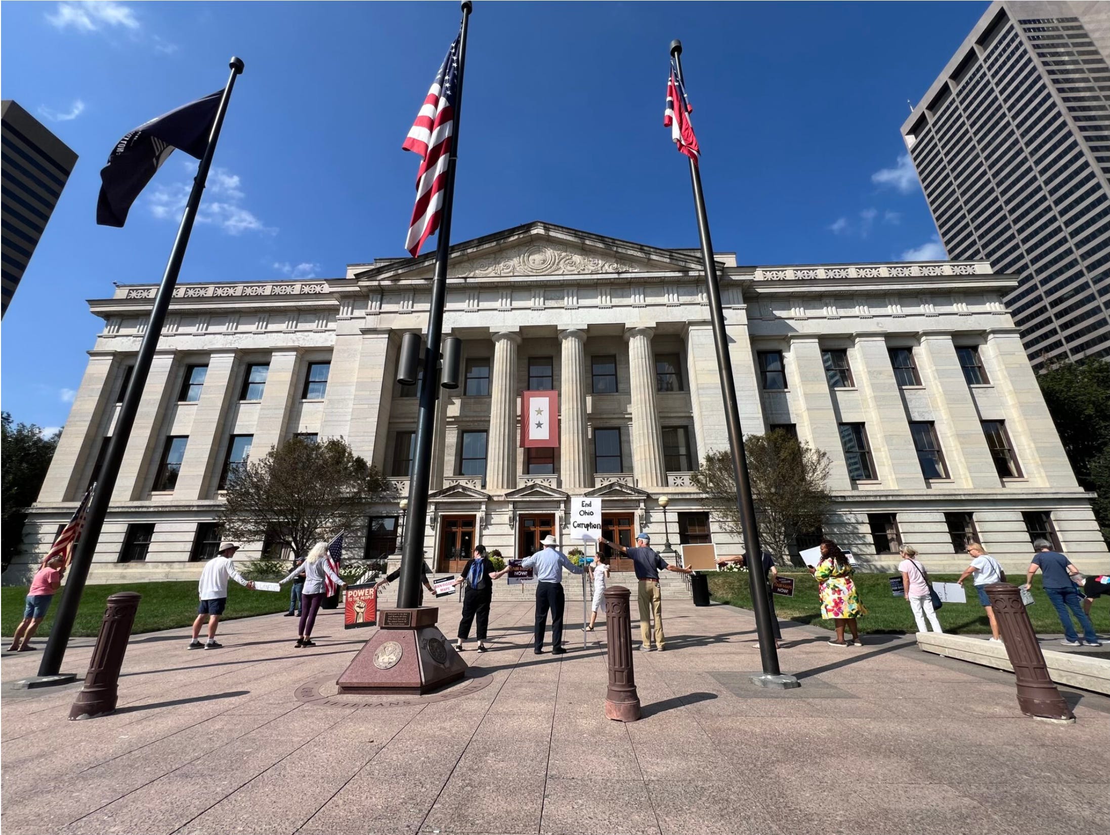 Ohioans from across the state’s congressional districts joined hands in a circle around the Statehouse on Wednesday, as a show of solidarity and hope for a fair redistricting process.