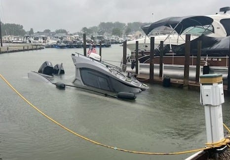Chief Deputy Brad York confirmed to StayTunedSandusky.com that the boat went under during a storm while tied to the dock. "At this time we are not sure of the cause," York said in an email. "Speculation is that maybe bilge pumps could not keep up and/or the port-side mooring line may have been too tight, which did not allow the boat to rise with the water. That may have dragged the stern below the dive doors, which are not sealed."