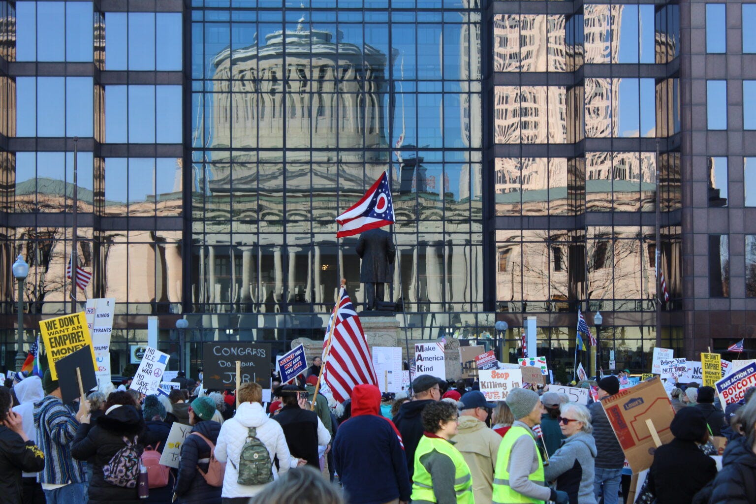 A protester in Reynoldsburg participating in No Kings protests Saturday, March 28, 2026. (Photo by Marty Schladen, Ohio Capital Journal.) No Kings protesters at the Ohio Statehouse in Columbus on March 28, 2026. (Photo by David DeWitt, Ohio Capital Journal.) No Kings protesters at the Ohio Statehouse in Columbus on March 28, 2026. (Photo by David DeWitt, Ohio Capital Journal.) No Kings protesters at the Ohio Statehouse in Columbus on March 28, 2026. (Photo by David DeWitt, Ohio Capital Journal.) No Kings protesters at the Ohio Statehouse in Columbus on March 28, 2026. (Photo by David DeWitt, Ohio Capital Journal.) No Kings protesters at the Ohio Statehouse in Columbus on March 28, 2026. (Photo by David DeWitt, Ohio Capital Journal.) A protester in Reynoldsburg participating in No Kings protests Saturday, March 28, 2026. (Photo by Marty Schladen, Ohio Capital Journal.) No Kings protesters at the Ohio Statehouse in Columbus on March 28, 2026. (Photo by David DeWitt, Ohio Capital Journal.) No Kings protesters at the Ohio Statehouse in Columbus on March 28, 2026. (Photo by David DeWitt, Ohio Capital Journal.) No Kings protesters at the Ohio Statehouse in Columbus on March 28, 2026. (Photo by David DeWitt, Ohio Capital Journal.) No Kings protesters at the Ohio Statehouse in Columbus on March 28, 2026. (Photo by David DeWitt, Ohio Capital Journal.) A protester in Reynoldsburg participating in No Kings protests Saturday, March 28, 2026. (Photo by Marty Schladen, Ohio Capital Journal.) The Ohio Statehouse in Columbus. (Photo by David DeWitt, Ohio Capital Journal.) No Kings protesters at the Ohio Statehouse in Columbus on March 28, 2026. (Photo by David DeWitt, Ohio Capital Journal.) No Kings protesters at the Ohio Statehouse in Columbus on March 28, 2026. (Photo by David DeWitt, Ohio Capital Journal.) No Kings protesters at the Ohio Statehouse in Columbus on March 28, 2026. (Photo by David DeWitt, Ohio Capital Journal.) No Kings protesters at the Ohio Statehouse in Columbus on March 28, 2026. (Photo by David DeWitt, Ohio Capital Journal.) No Kings protesters at the Ohio Statehouse in Columbus on March 28, 2026. (Photo by David DeWitt, Ohio Capital Journal.) No Kings protesters at the Ohio Statehouse in Columbus on March 28, 2026. (Photo by David DeWitt, Ohio Capital Journal.) No Kings protesters at the Ohio Statehouse in Columbus on March 28, 2026. (Photo by David DeWitt, Ohio Capital Journal.) No Kings protesters at the Ohio Statehouse in Columbus on March 28, 2026. (Photo by David DeWitt, Ohio Capital Journal.) No Kings protesters at the Ohio Statehouse in Columbus on March 28, 2026. (Photo by David DeWitt, Ohio Capital Journal.) No Kings protesters at the Ohio Statehouse in Columbus on March 28, 2026. (Photo by David DeWitt, Ohio Capital Journal.) No Kings protesters at the Ohio Statehouse in Columbus on March 28, 2026. (Photo by David DeWitt, Ohio Capital Journal.) No Kings protesters at the Ohio Statehouse in Columbus on March 28, 2026. (Photo by David DeWitt, Ohio Capital Journal.) No Kings protesters at the Ohio Statehouse in Columbus on March 28, 2026. (Photo by David DeWitt, Ohio Capital Journal.) No Kings protesters at the Ohio Statehouse in Columbus on March 28, 2026. (Photo by David DeWitt, Ohio Capital Journal.) No Kings protesters at the Ohio Statehouse in Columbus on March 28, 2026. (Photo by David DeWitt, Ohio Capital Journal.) No Kings protesters at the Ohio Statehouse in Columbus on March 28, 2026. (Photo by David DeWitt, Ohio Capital Journal.) No Kings protesters at the Ohio Statehouse in Columbus on March 28, 2026. (Photo by David DeWitt, Ohio Capital Journal.) No Kings protesters at the Ohio Statehouse in Columbus on March 28, 2026. (Photo by David DeWitt, Ohio Capital Journal.) No Kings protesters at the Ohio Statehouse in Columbus on March 28, 2026. (Photo by David DeWitt, Ohio Capital Journal.)