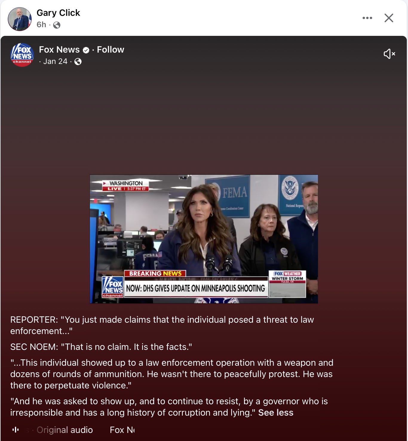 State Rep. Gary Click (R-Vickery) joined the fray this weekend, re-posting unsubstantiated claims from Secretary Kristi Noem suggesting the victims forced the agents to use lethal force. These claims stand in stark contrast to the videos captured by witnesses, which show a “swarm” of agents wrestling Pretti to the ground before shots were fired.