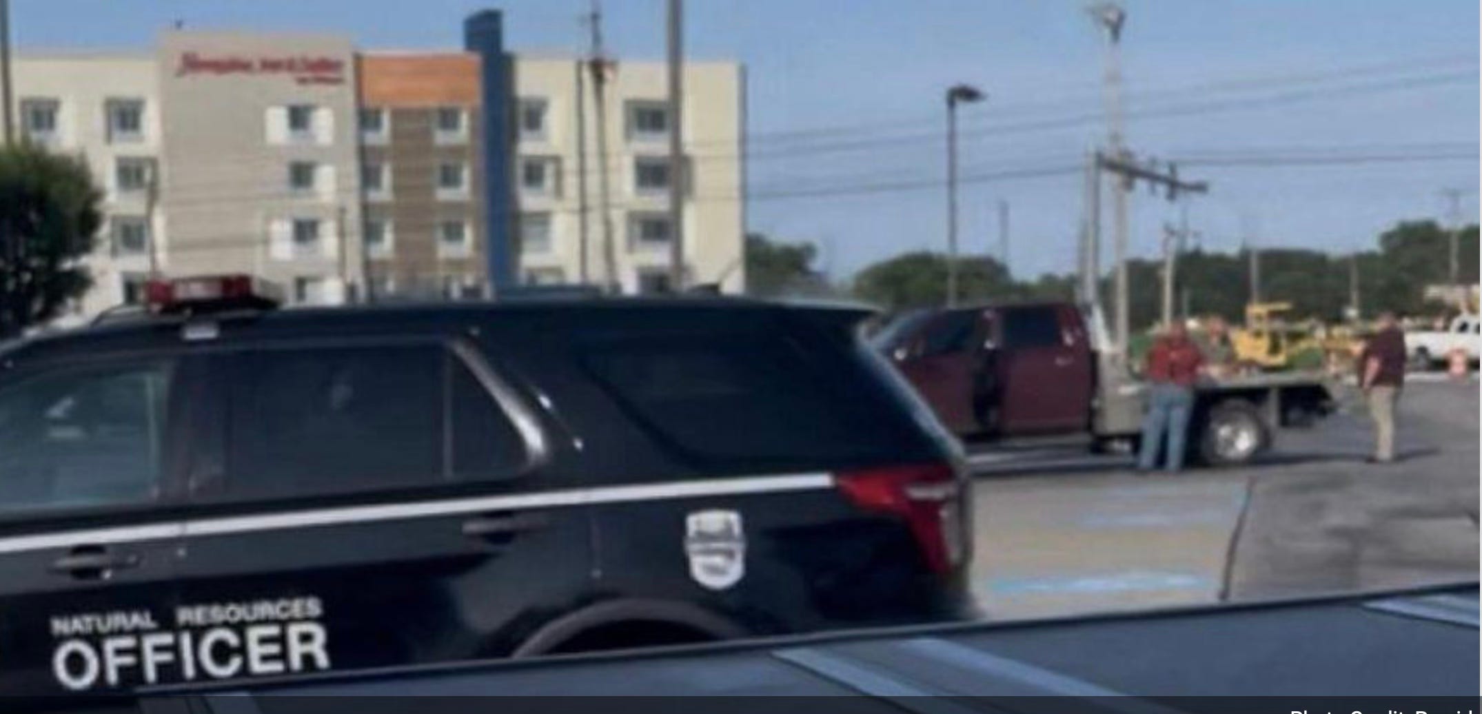 In a screenshot taken from video, an Ohio Department of Natural Resources vehicle sits in the parkin…