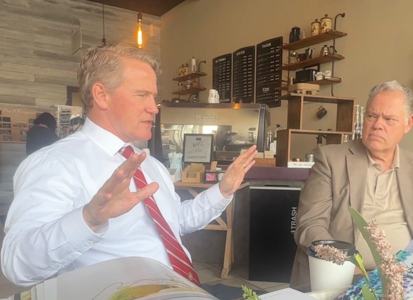 Husted met with a few local officials at Sheri’s Coffee House on Whittlesey Avenue in Norwalk on Tuesday, and he wasn’t ready to answer questions about Jeffry Epstein or Leslie Wexner. Husted — who has not had any announced or participated in any open local visits since he became Senator in January 2025 — was joined by Huron County Commissioners Harry Brady and Tom Dunlap, along with members of his security detail and campaign staff.