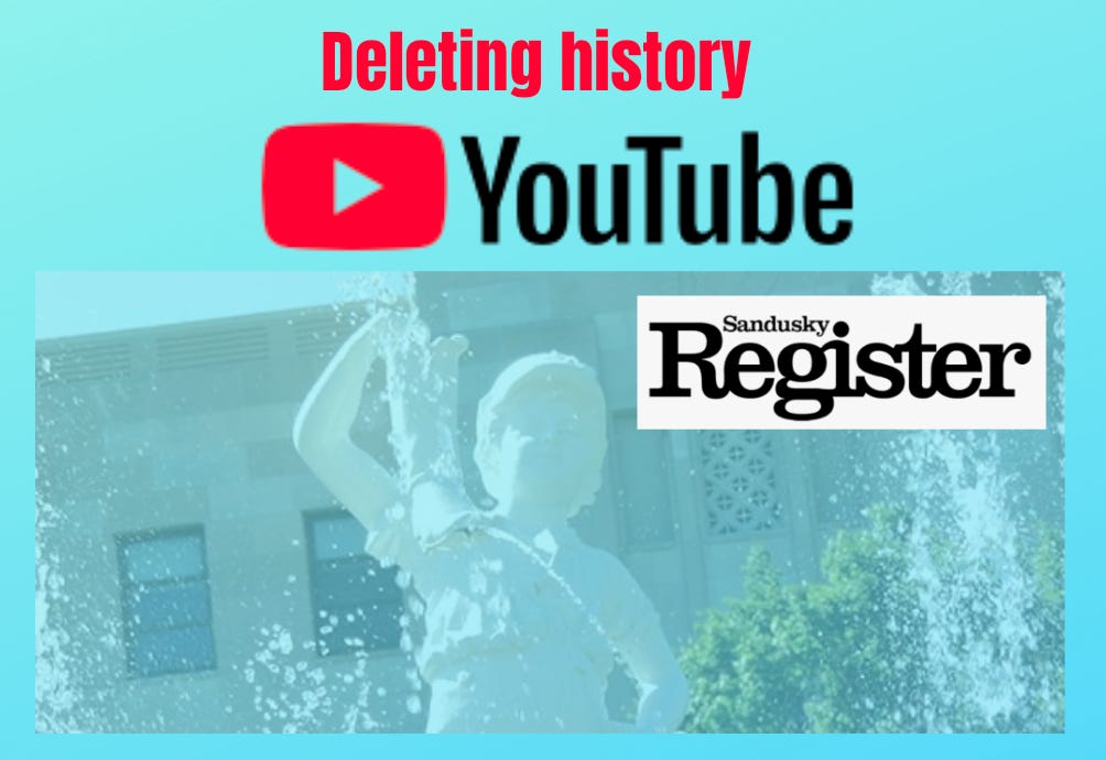 For me, the scene between father and son was taken as a lesson to not be attached to anything. Even, God forbid, my own writing, my own work. I’ve needed that lesson this month, since learning that the owners of the Sandusky Register accidentally deleted two decades of news coverage from the YouTube archives.