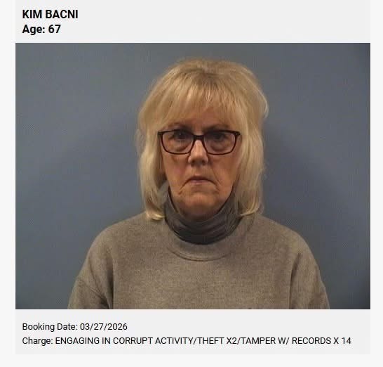 Kim Bacni, 67, and Tracey Newman, 52, are each charged with engaging in corrupt activity, two counts of theft, and 14 counts each of tampering with records. Bacni and Kapiskosky have lived together in the township for about two decades. She and Newman both work in the office at Walt’s Auto Repair, Kapiskosky’s business in the township.
